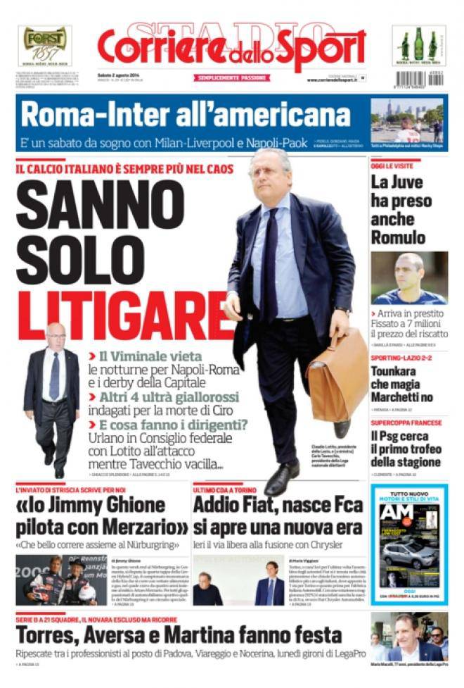 Corriere dello Sport, prima pagina e titoli del 2 agosto 02/08/2014 - 08:14 di Keivan Karimi Ecco come apre il quotidiano sportivo nazionale: Pippo esami di Liverpool Wenger stoppa Campbell Rispunta Taarabt