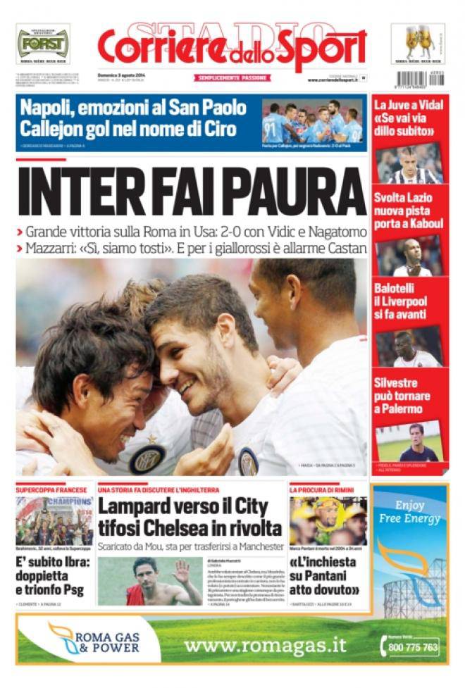 Corriere dello Sport, prima pagina e titoli del 3 agosto 03/08/2014 - 08:09 di Keivan Karimi Ecco la prima pagina e i titoli del quotidiano sportivo: Balotelli-De Sciglio, le scelte Inzaghi prove di tridente