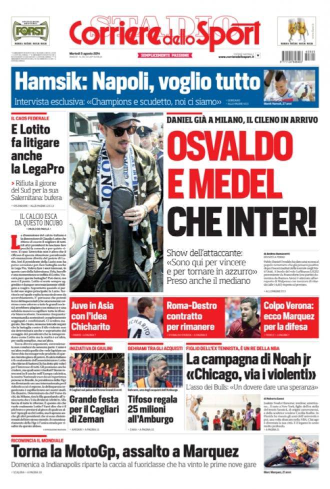 Corriere dello Sport, prima pagina e titoli del 5 agosto 05/08/2014 - 08:16 di Keivan Karimi Ecco l’apertura del Corriere di oggi con alcuni titoli: Rivoluzione Milan, le mosse di Pippo E insiste: vuole Cerci