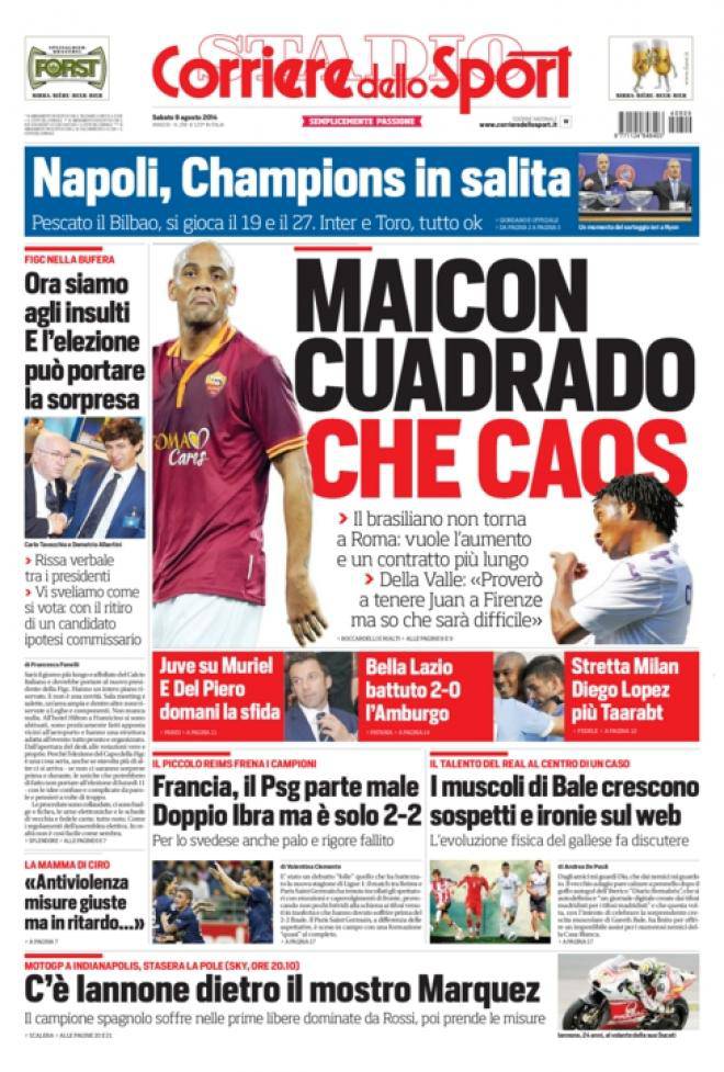Corriere+dello+Sport%2C+prima+pagina+e+titoli+del+9+agosto