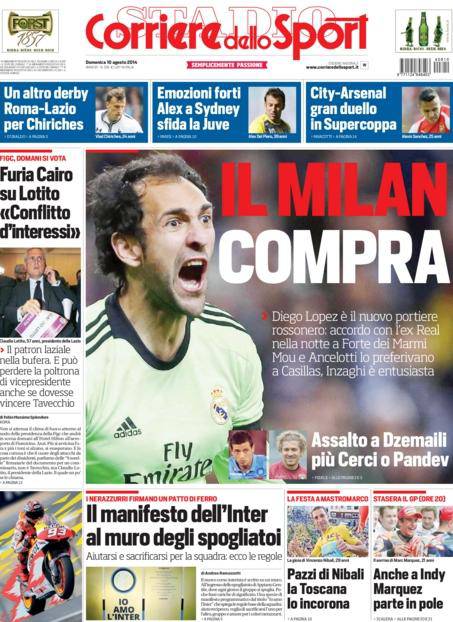 Corriere dello Sport: la prima pagina del 10 agosto 10/08/2014 - 09:03 di Matteo B. Corriere dello Sport 10-08-2014 Redazione Milanlive.it