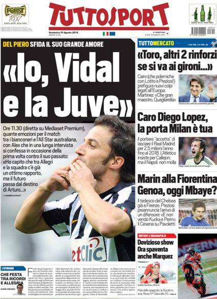 Tuttosport: la prima pagina del 10 agosto 10/08/2014 - 09:05 di Matteo B. Tuttosport 10-08-2014 Redazione Milanlive.it