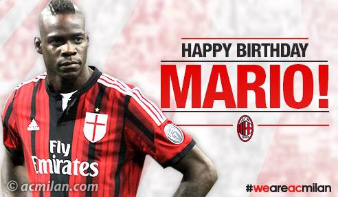Al momento della riunione in palestra prima dell’allenamento del mattino oggi a Milanello, ci sono stati gli auguri di tutto il gruppo a Mario Balotelli. Poi alcuni compagni si sono rivolti scherzosamente e affettuosamente a lui via twitter, come ad esempio Nigel De Jong e Adil Rami.