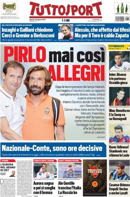 Tuttosport: la prima pagina del 14 agosto 14/08/2014 - 08:35 di Matteo B. Tuttosport 13-08-2014 Redazione Milanlive.it