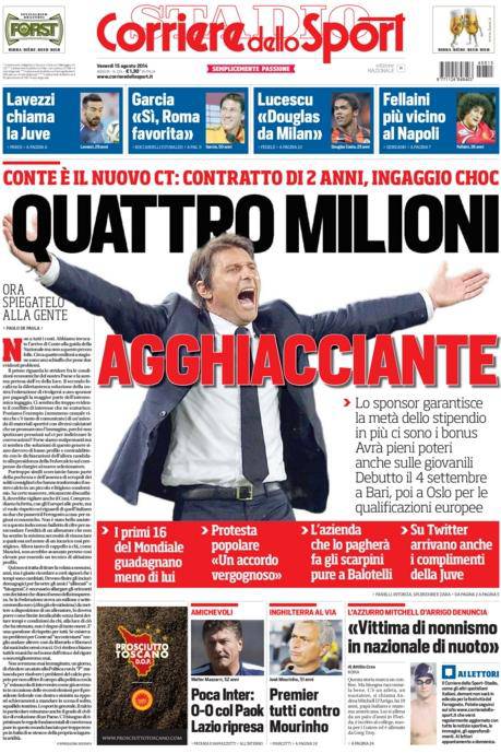 Corriere dello Sport: la prima pagina del 15 agosto 15/08/2014 - 09:13 di Matteo B. Corriere dello Sport 15-08-2014 Redazione Milanlive.it