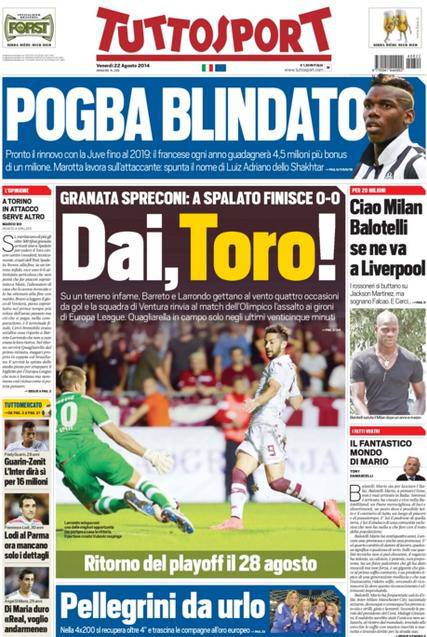Tuttosport: la prima pagina del 22 agosto 22/08/2014 - 08:20 di Matteo B. Tuttosport 22-08-2014 Redazione Milanlive.it