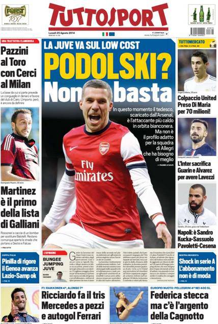 Tuttosport: la prima pagina del 25 agosto 25/08/2014 - 08:08 di Matteo B. Tuttosport 25-08-2014 Redazione Milanlive.it