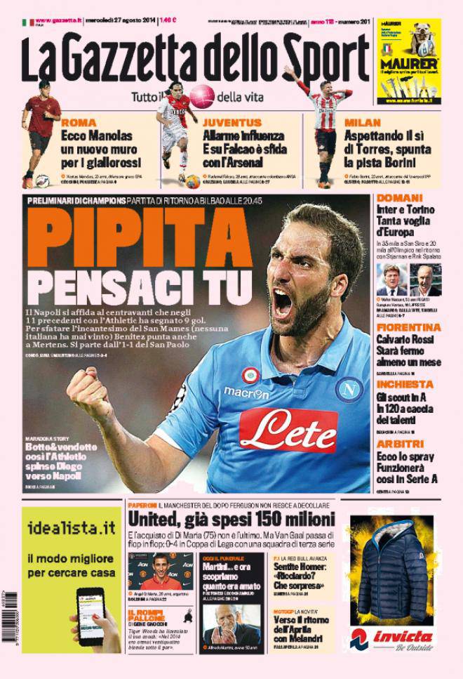 Gazzetta dello Sport, la prima pagina del 27 agosto 27/08/2014 - 07:47 di Keivan Karimi Gasport del 27 agosto