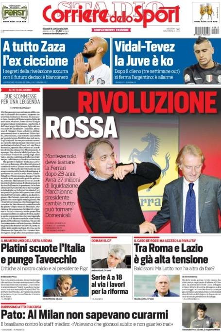 Corriere dello Sport: la prima pagina dell’11 settembre 11/09/2014 - 08:04 di Matteo B. Corriere dello Sport 11-09-2014 Redazione Milanlive.it