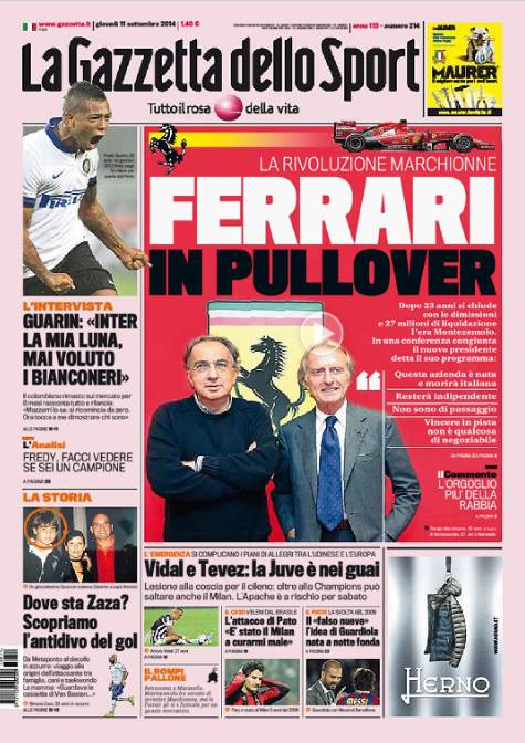 Gazzetta dello Sport: la prima pagina dell’11 settembre 11/09/2014 - 08:03 di Matteo B. Gazzetta dello Sport 11-09-2014 Redazione Milanlive.it