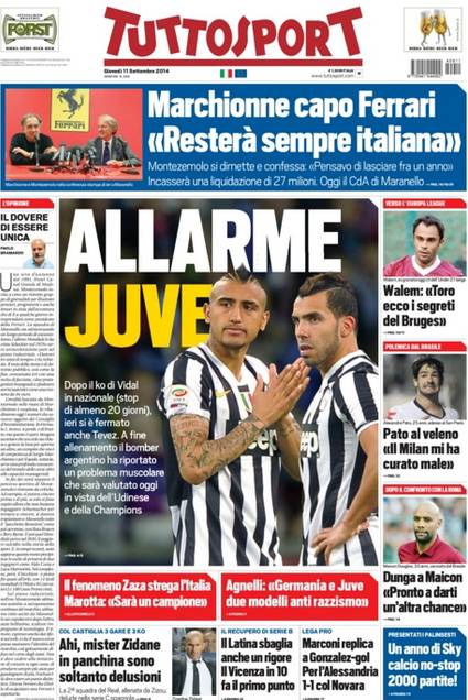 Tuttosport: la prima pagina dell’11 settembre 11/09/2014 - 08:06 di Matteo B. Tuttosport 11-09-2011 Redazione Milanlive.it