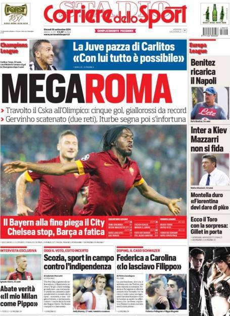 Corriere dello Sport: la prima pagina del 18 settembre 18/09/2014 - 07:54 di Matteo B. Corriere dello Sport 18-09-2014 Redazione Milanlive.it