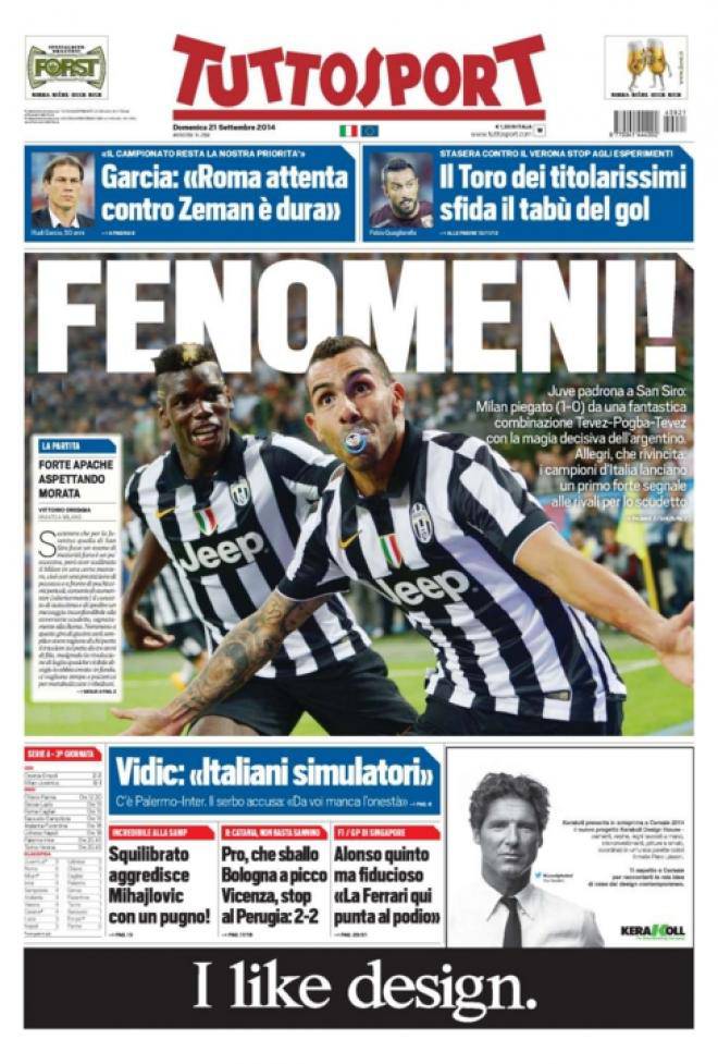 TuttoSport, la prima pagina del 21 settembre