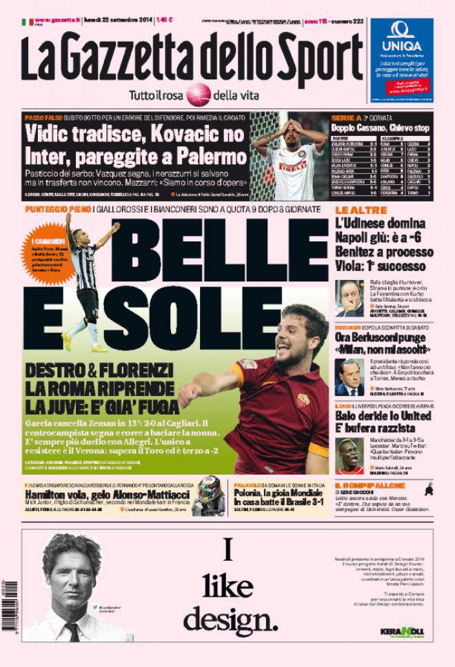 Gazzetta+dello+Sport%2C+la+prima+pagina+del+22+settembre