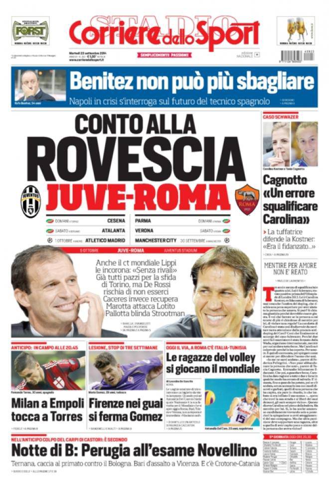 Corriere dello Sport, la prima pagina del 23 settembre