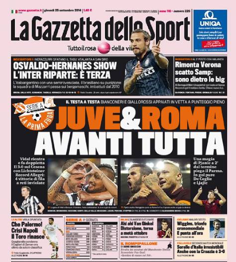 [caption id="attachment_103461" align="alignnone" width="474"] Gazzetta dello Sport 25-09-2014[/caption] Redazione Milanlive.it