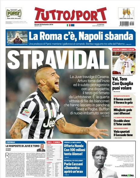 Tuttosport: la prima pagina del 25 settembre 25/09/2014 - 08:12 di Matteo B. Tuttosport 25-09-2014 Redazione Milanlive.it