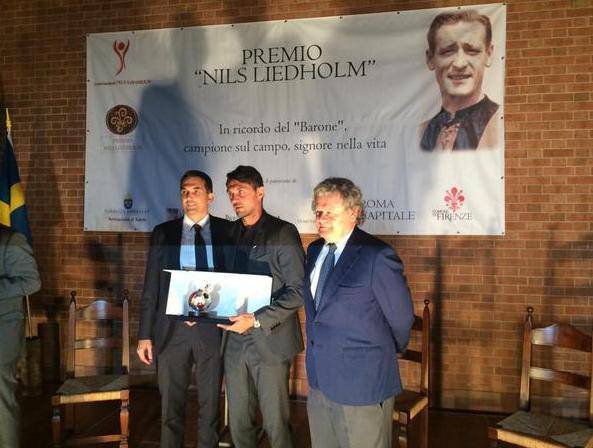 Paolo Maldini, storico capitano e bandiera del Milan, è stato premiato a Cuccaro. La motivazione del Premio Liedholm 2014 a Paolo è la seguente: “Per essersi distinto nell’interpretazione del proprio ruolo sul campo in modo tecnicamente eccellente e per i valori di lealtà e fedeltà dimostrati durante l’arco della sua lunga carriera, vissuta sempre con la massima professionalità ed eleganza“.