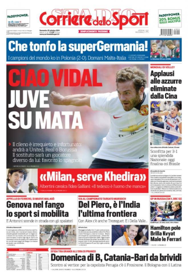 Corriere dello Sport, la prima pagina del 13 ottobre