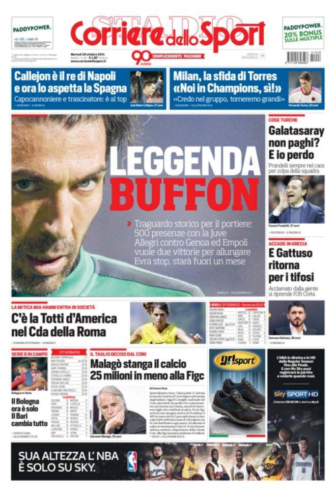 Corriere dello Sport, la prima pagina del 28 ottobre