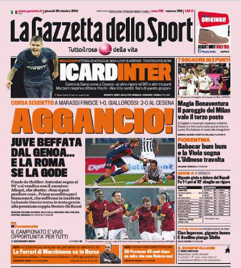 Gazzetta dello Sport: la prima pagina del 30 ottobre 30/10/2014 - 08:01 di Matteo B. Gazzetta dello Sport (30-10-2014) Redazione Milanlive.it