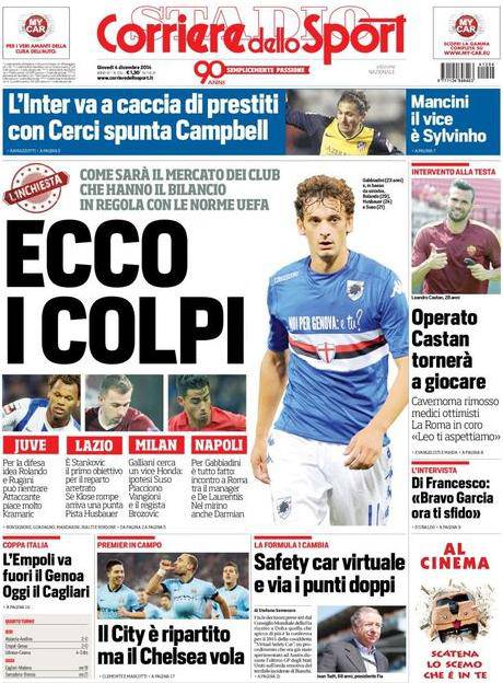 Corriere dello Sport: prima pagina del 4 dicembre 04/12/2014 - 06:44 di Matteo B. Redazione MilanLive.it