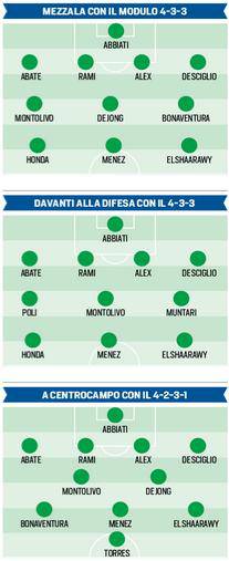 De seguito le grafiche del Corriere dello Sport con alcuni schieramenti possibili del Milan con il ritorno di Montolivo.