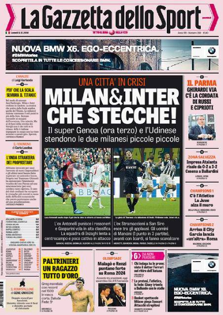 Gazzetta dello Sport: prima pagina dell’8 dicembre 08/12/2014 - 08:20 di Matteo B. Redazione MilanLive.it