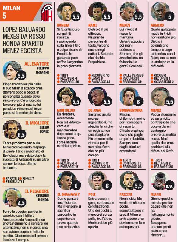 Il Milan cade a Genova contro il Genoa e perde l’imbattibilità in trasferta. La squadra rossonera non ha prodotto un bel calcio ed è stata sconfitta dai rossoblu che invece si sono ben disposti in campo e sono riusciti ad assere maggiormente pericolosi e concreti. Tra i giocatori rossoneri sono in pochi a salvarsi e troppi da bocciare.