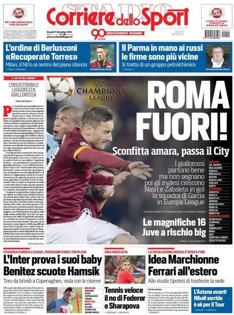 Corriere dello Sport: prima pagina dell’11dicembre 11/12/2014 - 08:35 di Matteo B. Redazione MilanLive.it