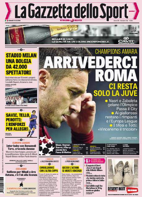 Gazzetta dello Sport: prima pagina dell’11 dicembre 11/12/2014 - 08:23 di Matteo B. Redazione MilaLive.it