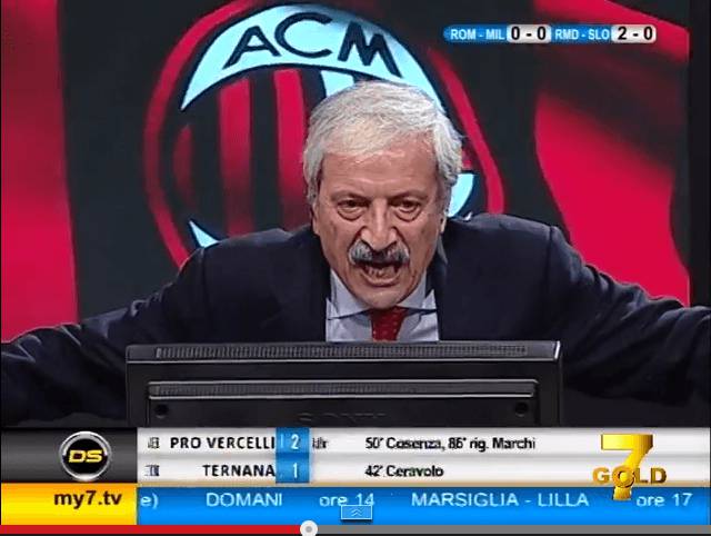 Il solito scatenato Tiziano Crudeli accoglie con un sospiro di sollievo il pareggio del suo Milan sul campo della tanto temuta Roma. Il cronista di fese rossonera, sulle frequenze di 7 Gold ha commentato ieri in diretta il match con il solito spirito goliardico, credendo persino nel colpaccio rossonero e tremando nel finale, con la sua squadra in inferiorità numerica. Contento Crudeli a fine gara per il punto guadagnato all’Olimpico.