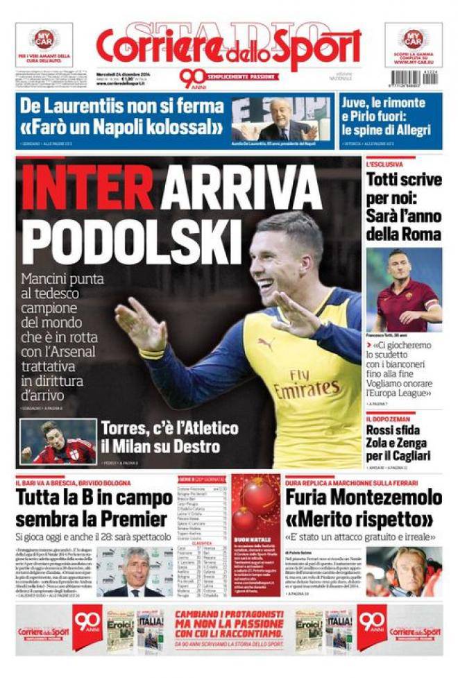 Corriere dello Sport, la prima pagina del 24 dicembre