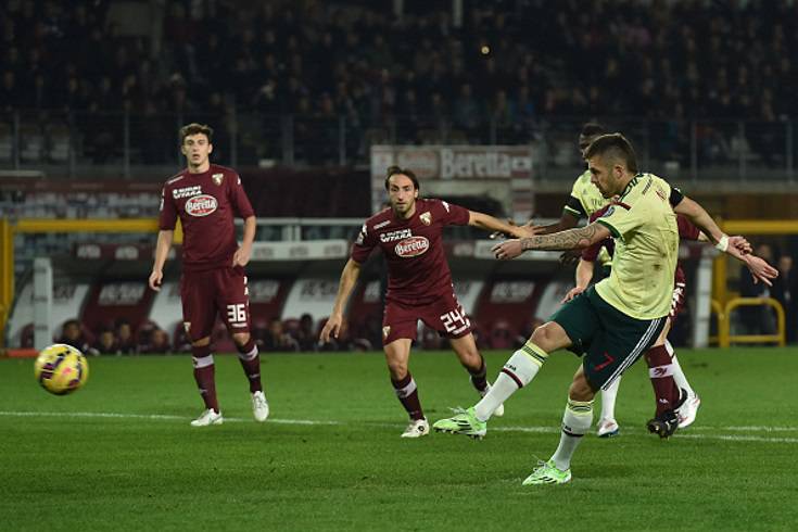 E’ finito il primo tempo della 18^ giornata di Serie A tra Torino e Milan. Rossoneri in vantaggio per 1-0 grazie al gol di Jeremy Menez su calcio di rigore dopo appena 2 minuti. Gol a parte, il Milan è stato messo sotto dai padroni di casa che hanno creato una lunga serie di palle da gol, fortunatamente per i rossoneri, non concretizzate. Sul finale di tempo, espulso De Sciglio per doppio fallo su Darmian.