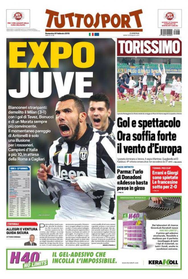TuttoSport, la prima pagina dell’8 febbraio