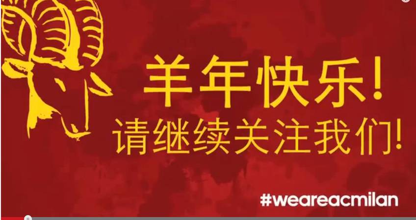Oggi 19 febbraio corrisponde al giorno del Capodanno cinese. Scatta dunque l’anno della capra secondo la terminologia dell’estremo Oriente e il Milan ha deciso di fare gli auguri a tutti i propri tifosi di origine cinese pubblicando sul proprio canale Youtube un divertente video.