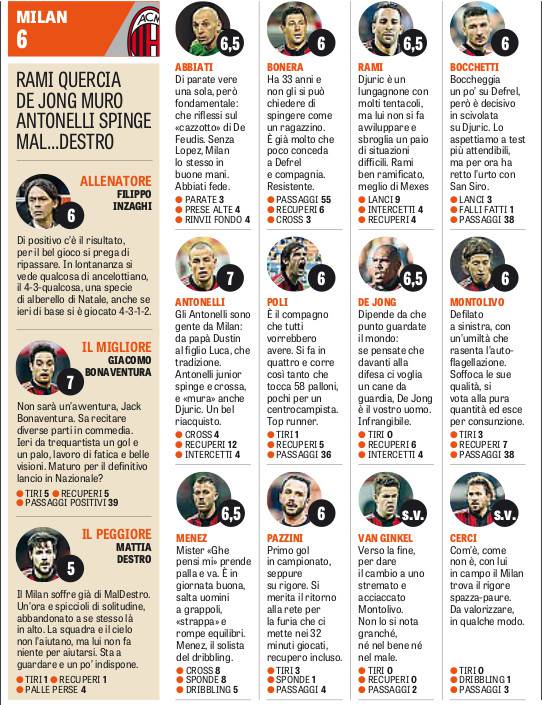 La Gazzetta dello Sport ha redatto quest’oggi le pagelle dei calciatori del Milan scesi in campo ieri pomeriggio contro il Cesena. Il 2-0 ed i tre punti conquistati fanno tornare il sorriso sulla bocca dei rossoneri, che dunque colgono molte promozioni dal punto di vista individuale. Andiamo a leggere voti e giudizi assegnati dalla ‘rosea’ nell’ultima giornata di campionato.