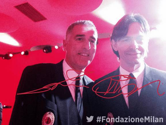 Il profilo twitter del Milan ha pubblicato diverse foto di alcuni dei protagonisti della serata. Anche i due mister rossoneri Mauro Tassotti e Filippo Inzaghi hanno fatto una foto nello speciale ‘Twitter Mirror’. Questo lo scatto dei due tecnici:
