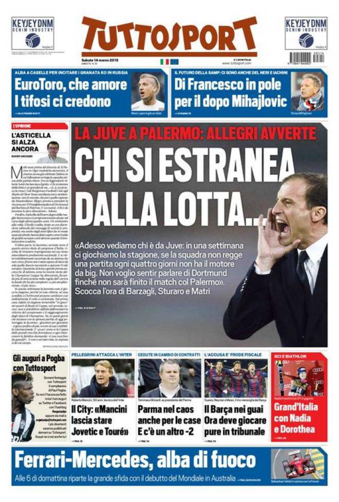 Tuttosport%2C+la+prima+pagina+del+14+marzo