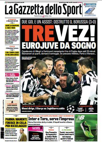 Gazzetta dello Sport: prima pagina del 19 marzo