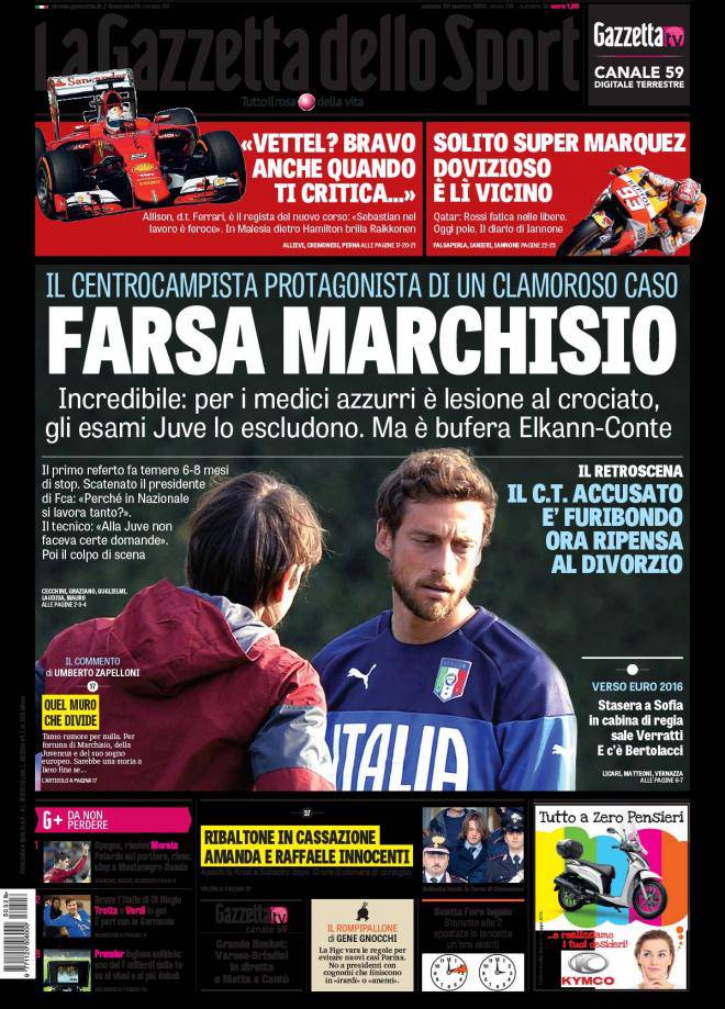 Gazzetta dello Sport, la prima pagina del 28 marzo