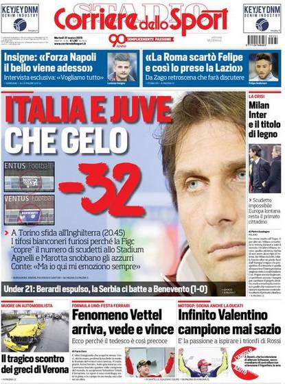 Corriere dello Sport: prima pagina del 31 marzo