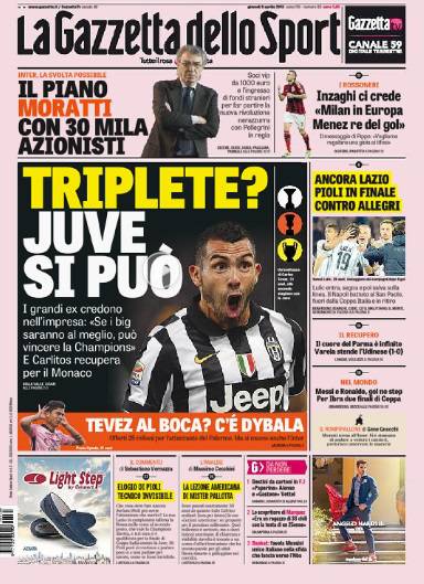 Gazzetta dello Sport: prima pagina del 9 aprile