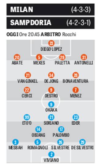 Un posticipo che sa di scontro diretto per l’Europa; il Milan ospita la Sampdoria e dopo lo spettacolare 2-2 dell’andata in quel di Marassi c’è da attendersi una sfida tutt’altro che sonnolenta e senza sorprese. La squadra di Filippo Inzaghi vuole continuare sulla scia dei risultati positivi delle ultime giornate, confermando infatti l’undici anti-Palermo, restando però con qualche dubbio a centrocampo. Cambia invece la Sampdoria di Mihajlovic, che passa ad un duttile 4-2-3-1 avanzando Soriano sulla trequarti. Ecco le probabili formazioni per la Gazzetta dello Sport: