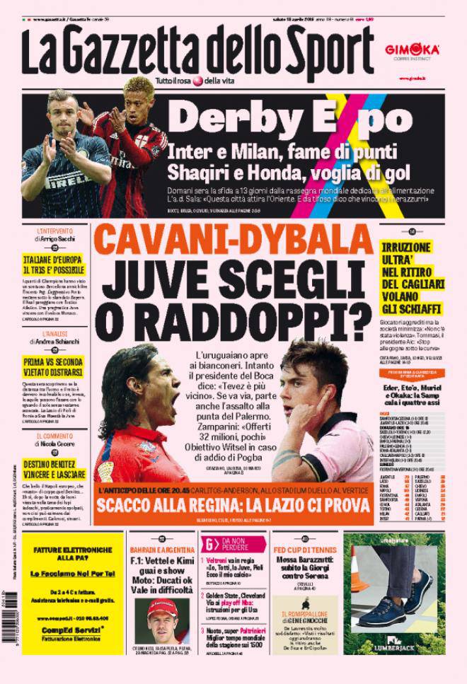 Gazzetta dello Sport, la prima pagina del 18 aprile