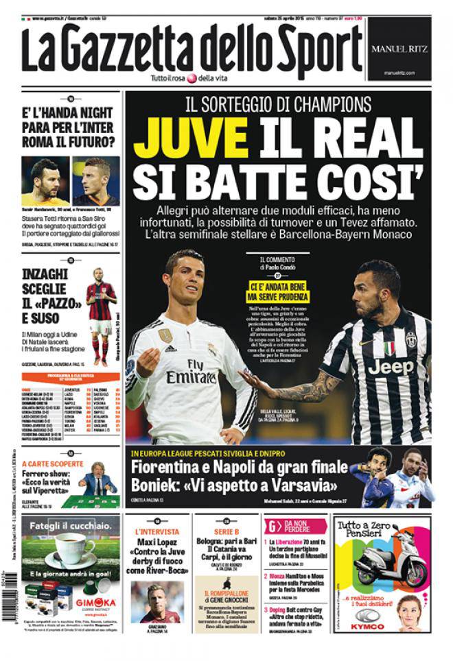 Gazzetta dello Sport, la prima pagina del 25 aprile