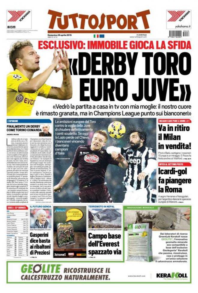 Tuttosport, la prima pagina del 26 aprile