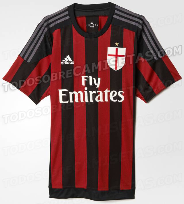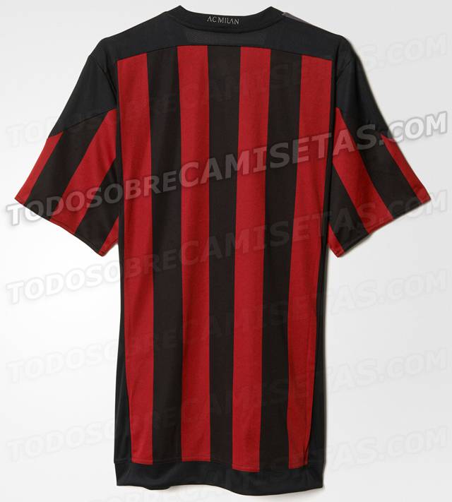 Il portale web todosobrecamisetas.com ha svelato quella che sarà la prima maglia del Milan per la stagione 2015/2016. Già tempo fa erano emerse indiscrezioni, ma questa sembra essere una conferma su quella che sarà la divisa che la squadra utilizzerà nelle partite casalinghe. C’è un ritorno alle classiche strisce verticali rossonere senza strane fantasie poco apprezzate dai tifosi ed è stato confermato il logo della città di Milano invece di quello classico del club. Una novità è rappresentata dalle strisce orizzontali Adidas sulle spalle che si presentano grigie. Anche il colletto è diverso rispetto a quello della maglia attuale. I pantaloncini sono bianchi con le strisce Adidas grigie.