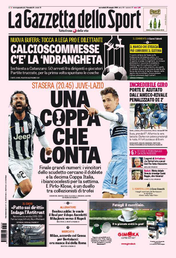 Gazzetta dello Sport: prima pagina del 20 maggio 20/05/2015 - 08:17 di Matteo B. Gazzetta dello Sport