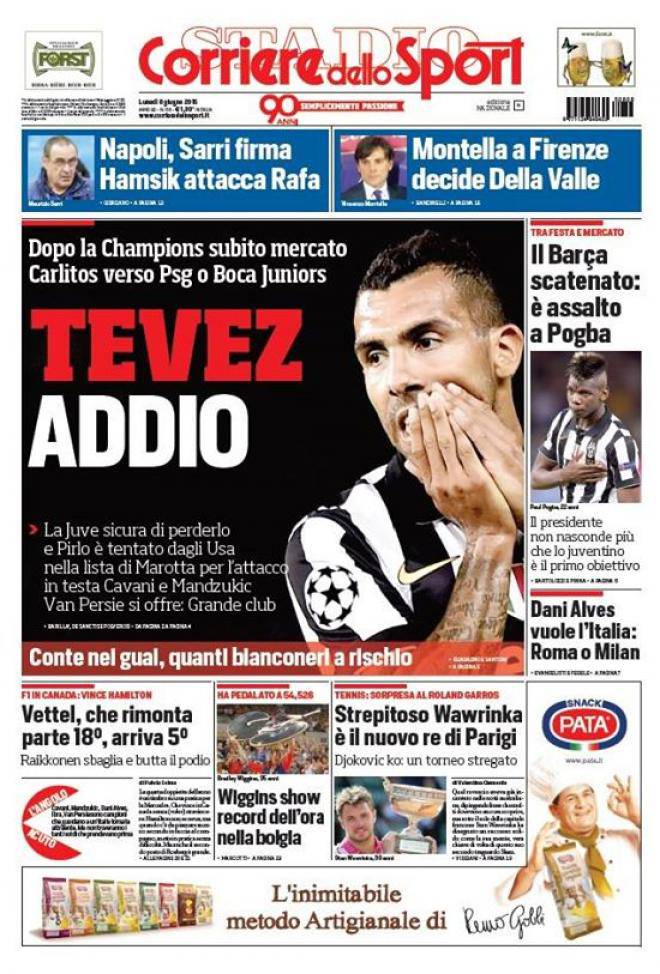 Corriere dello Sport, la prima pagina dell’8 giugno